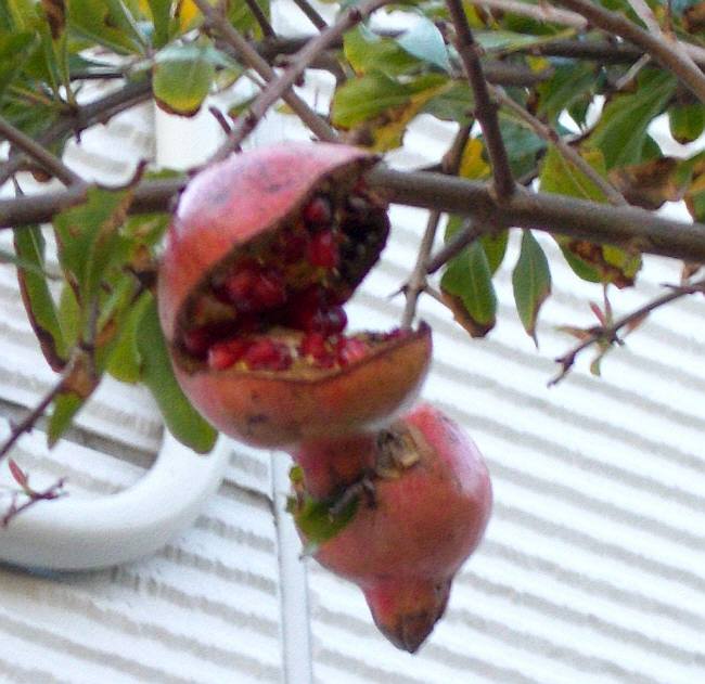 割れて中の実が見えるザクロ。画像が汚くてスミマセン 。<(_ _)>