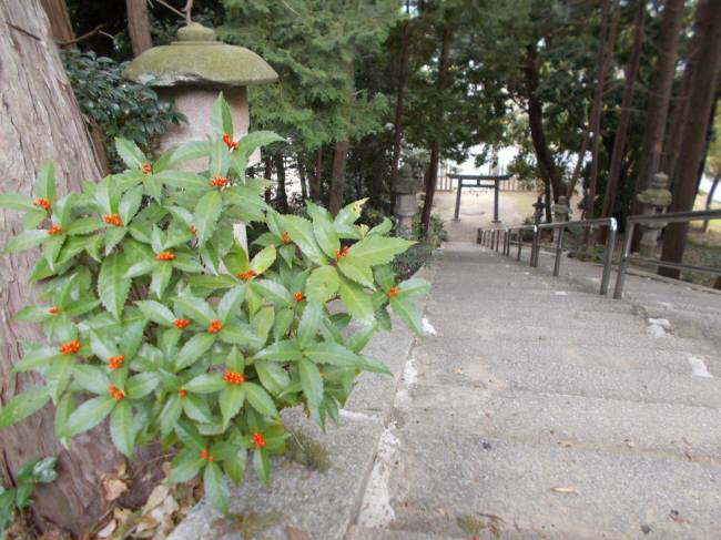 ​​千両 公園の中に祀られている秋葉神社の参道の脇に植えられていました。