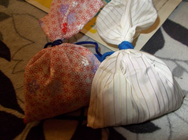 ミカンの皮、ラベンダーの葉をそれぞれ袋に詰めて、