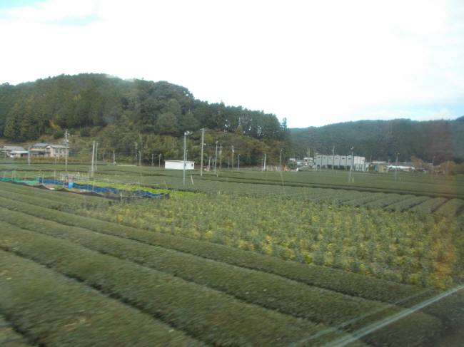 画像では見えないですが、所々、白いお茶の花が車窓から見えました。