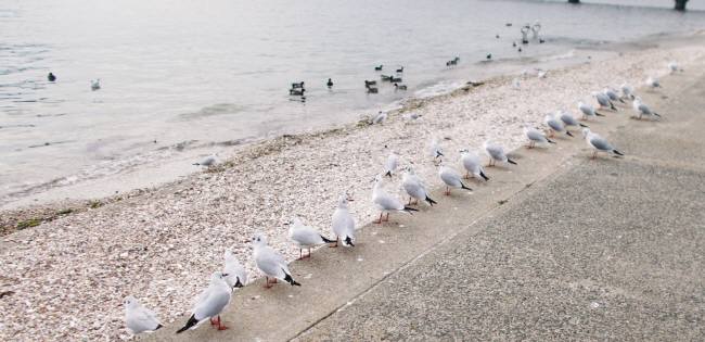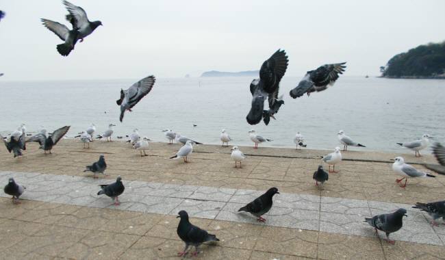 海岸には様々な鳥がいますが、やはり鳩が多いです。