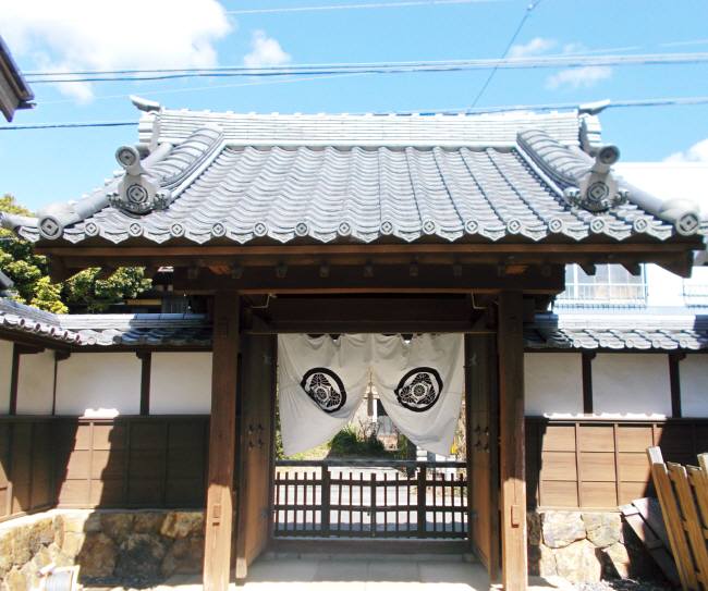 資料館前に建っていた古い格子戸の家(手前の門は資料館です)