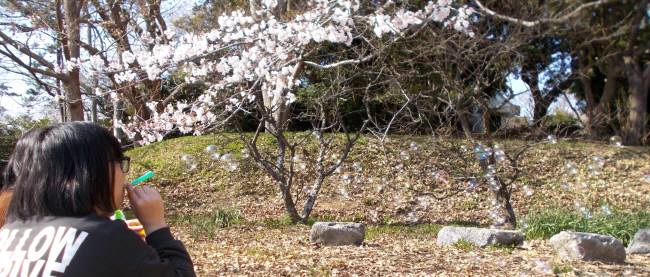 桜の木の下で…空を見上げながら 子供たちの歓声を聞く