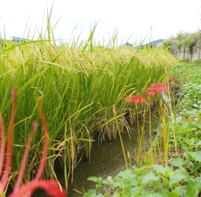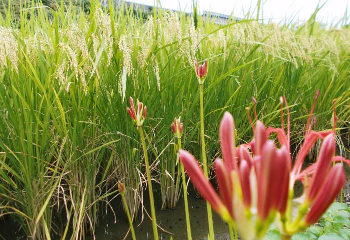 毎年 田んぼの畦道に沿って 彼岸花の花が咲いているのだが
