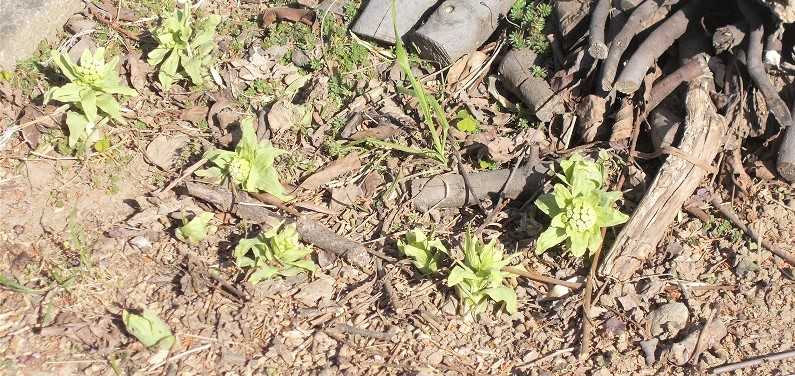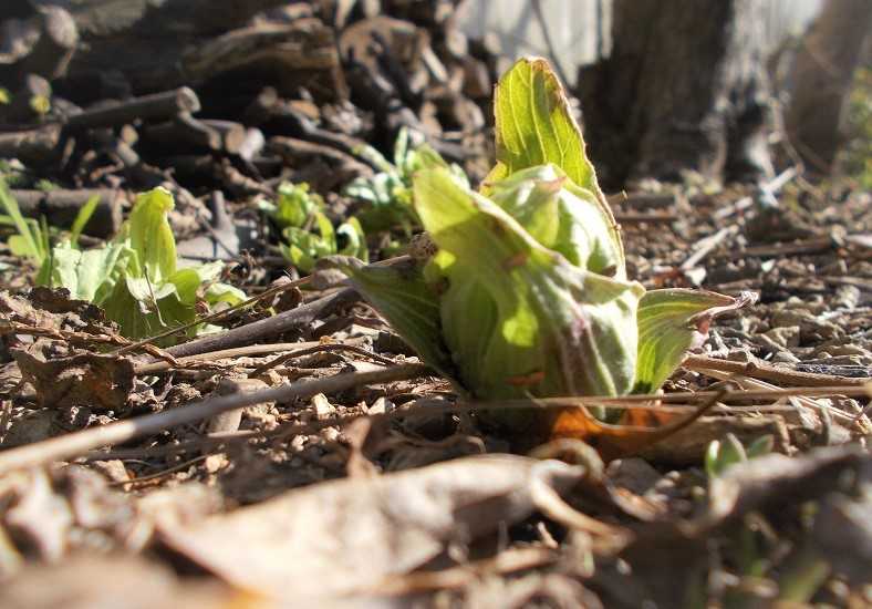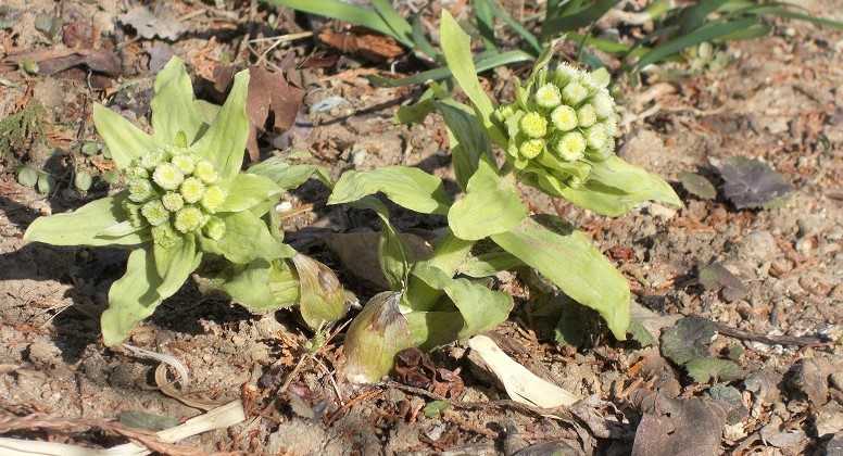 ​​蕗の薹は、暖かくなると茎が伸びる。