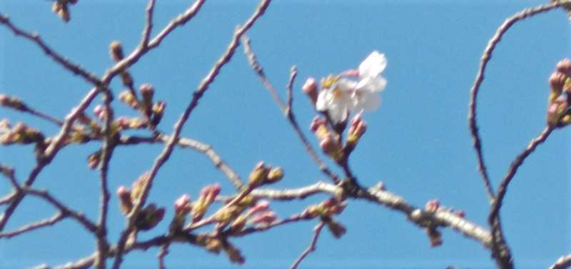 公園の桜が数輪‥静かに咲いていた。