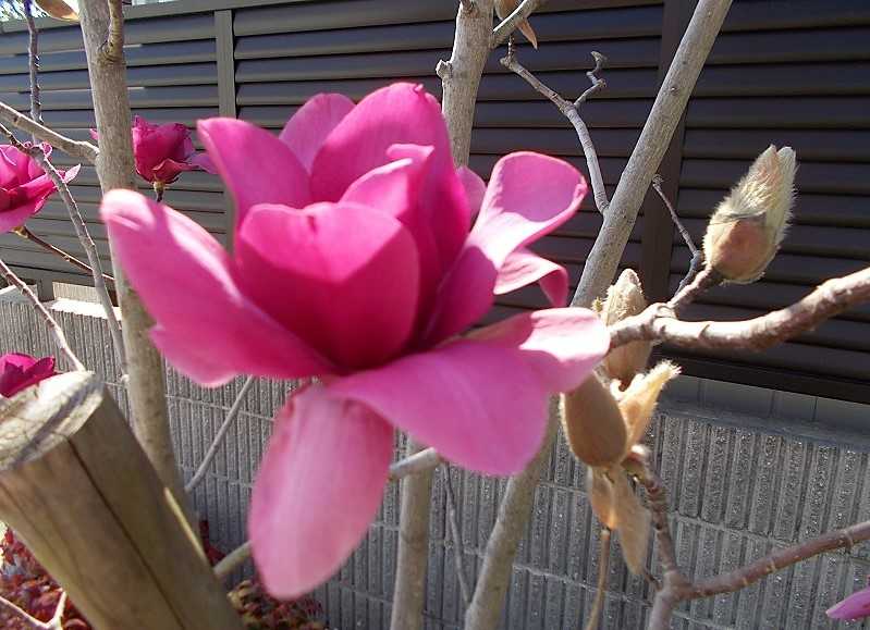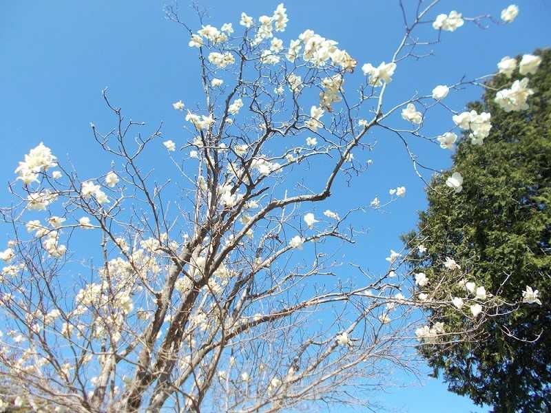 寺の境内に咲いている木蓮を見上げる‥