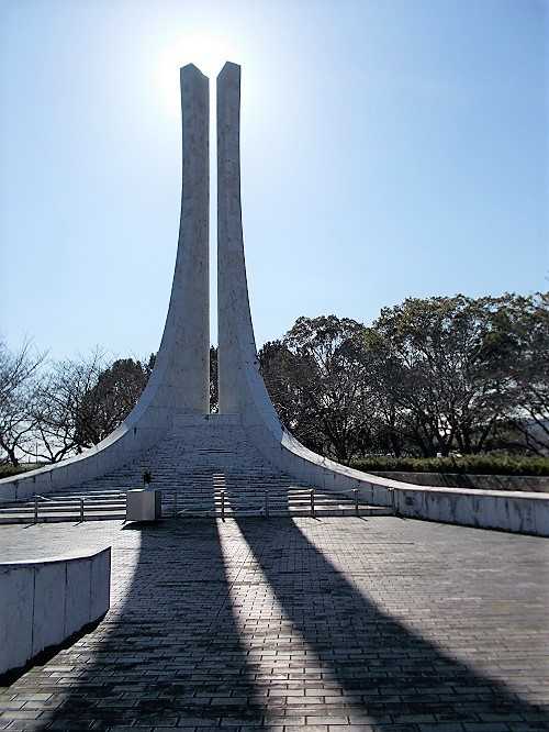 ​慰霊塔の前で、暫し休憩‥​