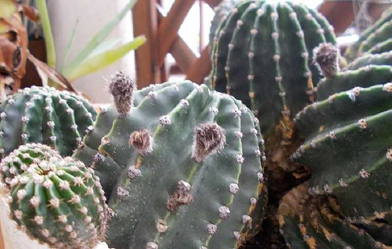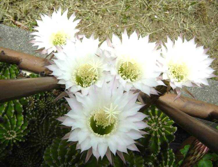 外に出されたサボテンは大きく育ち 翌年から花が咲くようになった。