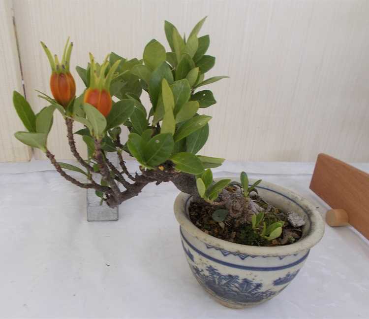 くちなしの小品盆栽‥個人的には、このような小品盆栽好きです。
