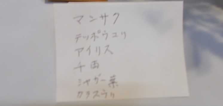 このメモは下の展示作品に使用した植物です。