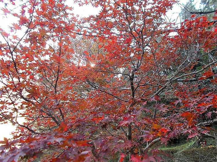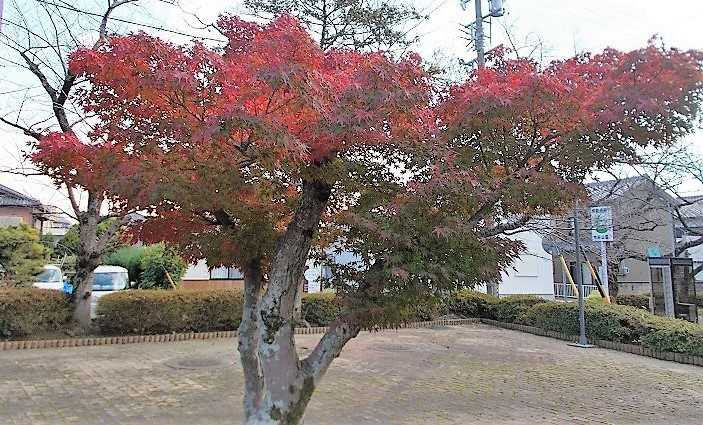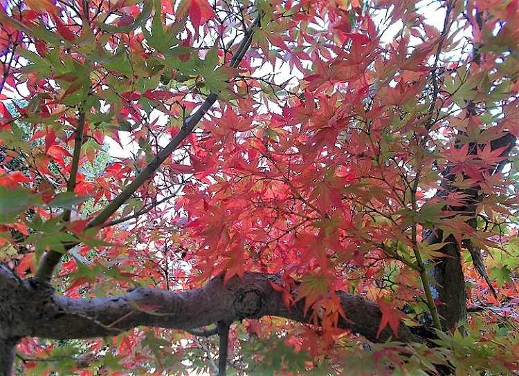 こちらのモミジ、下の方は葉の先が縮んで 枯れたようになっていた​。​