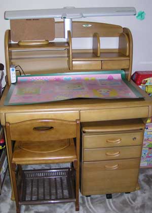 本日,子供の学習机がきました。来年の新入学に向けて,早速の準備です。実は3人目で初めて知ったのですが,今が学習机の買い時だそうです。これから新モデルが出てくるので,古いものを安売りしているのです。今回買った机も,数万円という破格値でした!ただし,自分たちで組み立てなければなりません。1時間ほどの労力がかかりましたが,楽しく家族で作りましたよ。どれだけ,この机で勉強するか見物です。長男なんか完全に物置場と化していますからね~。 午前中は,物置で使うスチール製の棚を組み立てたし,なんだか今日はいろんなものを組み立てたのでした。