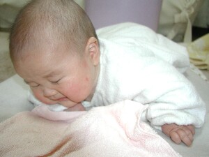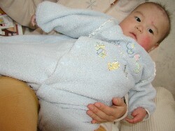 ▲葵(あおい)・ご機嫌な様子。 ▲葵(あおい)・うつ伏せになって、戻れなくなった(^^;(娘の名前の「名付け」の過程を振り返るシリーズです。以前のepisodeを遡る時は、「カテゴリ」よりご覧ください。)前回までに、簡単に上の娘「透萌(ともえ)」の名付けについて振り返ってみました。★「葵(あおい)」編スタート★2004年7月31日に生まれた娘の名前は、「葵」となりましたが、なぜこの名前になったのか。この際、自分なりに、名づけの過程を、さらけ出しつつ(^^;、書いてみます。上の娘の時には、いろいろと自分で、考えた記憶があります。しかし、正直なところ、自分の中では、前回の名付けのときに、出尽くした感があったので、新たに考えた名前というのは、そんなになかったと思います。もう考える気力がなかったといいますか…。それで、前にも述べましたように、透萌(ともえ)の時の、候補漏れの名前「葵」が、名付けられた、と。はい、では、終わり!!となると、元も子もないわけでして、確かに結果的には、「葵」に決まったのですが、私自身は「葵」という名前は、全く考えていませんでしたし、初めの頃は「候補」にすら上がってませんでした。その過程には、いろんな変遷というか、「妄想」が、ありました。名付けのドラマは、100人の赤ちゃんがいれば、100のドラマがあるわけでして、そうやって見ていくとおもしろいと思います。むしろ、今回は、妻のほうが、いくつか、考えていました。★第一番候補「くるみ」★妻が、妊娠して、最初の頃から言ってた名前が、「くるみ」。妻は、妊娠初期から中期にかけては、お腹の赤ちゃんに「くるみ」ちゃんと呼びかけていたようです。しかし、「くるみ」「胡桃」「来海」など、いろいろと、姓名判断のHPで打ち込んでみましたが、良くありませんでした。やはり、親としてみたら、悪いのよりは良いほうがいいと思うわけです。と、いうことで、妻は、結構気に入っていたみたいですが、ほぼ却下ということになりました。「え~、そんなぁ…。」とがっかりの妻。「まあ、それが運命というものだよ」などという私。★第2候補「真綾(まあや)」★あと、妻から出た名前では、「真綾(まあや)」がありました。これは、坂本真綾という声優出身の歌手のアルバムを持っていて、よく聴いてたこともあり、彼女の名前を、そっくりそのまま拝借したというわけです。ーーーーーーーーーーーーーーーーーーーーーーーーーーーーーーーーーーー【坂本真綾】1980年3月31日生まれ。主にCMソングや、洋画の吹き替えを中心に活動。1996年に、アニメ【天空のエスカフローネ】で主役『神崎ひとみ』に抜擢され、その際に録ったデモテープの曲 (当時流行っていた 『岡本真夜:tomorrow』)がきっかけで、主題歌を歌うことになる。そしてこれが、プロデューサー菅野よう子さんとの出会いとなり現在の歌手活動に繋がる。現在も、声優・役者・歌手などとして活躍中。ーーーーーーーーーーーーーーーーーーーーーーーーーーーーーーーーーーー彼女のベスト1アルバムはコレ!(個人的好み) 坂本真綾/Lucy(ルーシー)坂本真綾シングルコレクション・プラス H坂本真綾/シングルコレクション+(プラス) 「ニコパチ」<通常盤>坂本真綾/イージーリスニング坂本真綾/少年アリスこのアルバムの「走る」がきっかけで、はまる。坂本真綾/DIVEえっと。すみません…。こんなにたくさん載せて…(^^;彼女の歌声は、クセがない。素直。スッと染みこんでくる爽やかな感じ。クセがない分、インパクトには欠けるのでしょうが、ナチュラルな感じが、聞けば聞くほど味わいがでてくる、そんな声です。なぜ、坂本真綾を聞くようになったのか?という経緯を書くとまた長くなるので、書きませんが、彼女に興味があれば、レンタルででも借りてみてください。「真」と「綾」は、ともに好きな漢字だったので、そう言われれば、いいかな、と私も思うようになりました。はじめは、「ミツバチマーヤ」じゃないんだから!(^^;と思ったものですが、「真綾」という漢字は「真」と「綾」どちらも、考えてみれば好きで、これはいいかもしれない、と思うようになりました。ただし、これも姓名判断では、悪いほうでした。と、いうことで、これも難しいかなということになりました。妻は、「なんで、私が考えるのは、(姓名判断が)悪いの?」とぶつぶつ言ってましたが、そんなことを言われても、こちらは、ありのまま打ち込んでいるだけなので、どうしようもないわけです。しかし、「真綾」は、ふたりあきらめきれずに、結局最後の4候補まで、残ることになりました。「綾」という漢字は好きで、「綾音」「綾葉」とか、上の娘のときに、いくつか考えていました。ちなみに「真」という字を使った名前も、結構考えた記憶があります。また、個人的に思っていたのは、上の娘が「透萌(ともえ)」だったので、「透」のついた名前がいいなあ、というのもありました。どうも私は、上の娘の「透萌(とも