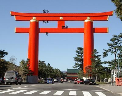 第十四幕「きらめく剣の炎」の続き。前回は、「園(=エデンの園)」を「音に返す」で見てみました。●「エデンの園」=「園(えん)」=「遠」=「円」=「炎」上記の漢字は、前回見たように、不思議ですが、どれも「エデンの園」の象徴になります。★「遠」=「先祖」★「遠」=「先祖」という意味を見つけたときは、おお!と思いました。「遠」にまさか、そのものずばり、「先祖」という言葉が出てくるとは…。聖書で言えば、まさに「エデンの園」は、人類の「先祖(=遠)」アダムとエバが、最初に住んだところです。=================================主なる神は、土(アダマ)の塵で人(アダム)を形づくり、その鼻に命の息を吹き入れられた。人はこうして生きる者となった。 主なる神は、東の方のエデンに園を設け、自ら形づくった人をそこに置かれた。 (創世記・第2章7節~8節) =================================★「円」=「完全・満ちている」=「鳥居」★「円」は、「満ちている」状態ですし、「園(=エデンの園)」の完全な空間をイメージします。さらに、「円」とは、360度であり、「360」=「弥勒(ミロク)」にも通じますし、そもそも、日本においては、まぎれもなく、「円」が通貨です。「円」=「満月」と同時に、光り輝く「太陽」の象徴でもあります。そして、日本は「円」を通過とした、「日の丸」(=太陽)を国旗にもつ「太陽」の国。まさに「円」づくめの国です。「円」=「園(エデンの園)」に通じることを思えば、不思議です。しかも、漢字の「円」は、字体がまさに、ある形を示しています。よく見ると…、そう…。「鳥居」です!!上の写真は「平安神宮の鳥居」です。上の写真を参考に、鳥居の構造を、ここで簡単に見てみますと、まず、垂直に建つ「二本の柱」があります。そして、二本の柱の頂上に、水平に渡した二本の木があります。上の木を「笠木」といいます。その下に連結してついた木、これを「島木」といいます。その下に空間があり、水平に渡された木が「貫」といいます。「島木」と「貫」の間に「額貫」があります。そして、写真と「円」という漢字を見比べてみると、実際の鳥居が、横に渡した木がはみ出ているのを差し引いても、よく似ています。と、いうか、「円」という漢字は、「鳥居」とそっくりです。真ん中の「額束」も、ちゃんとあります。他に、鳥居を象徴するような漢字は「刑」「形」の左部分や「丹」という漢字があげられそうです。「刑」は「刑罰」、「形」は「人形(ひとがた)」「形代(かたしろ)」という言葉もありますし、「丹」は「丹生(にう)」「丹後(たんご)」「丹波(たんば)」という言葉もあります。これらも、けっこう重要な漢字かもしれません。ともかく「園」=「円」=「太陽」=「日本」=「鳥居」という図式が描けそうです。二本柱の「鳥居」をくぐれば、そこは神域が広がります。となると、神社の境内、ひいては、神社の神域全体が、「エデンの園」のイメージと重ねられないこともないような気がします。日本人は「エデンの園」の象徴として、神社をつくった、とは言い過ぎかもしれませんが、無意識のうちにそういう神聖な場所を、求めていたのかもしれません。また、エデンの園の中央にあるという「命の木」とは、神社の境内によくある、「神木」とシンクロしてくるようにも思います。さらに、神社の鳥居(=円)とは、門番の役割を果たしていることも考えれば、エデンの園にある「ケルビムときらめく剣の炎」ともシンクロしてきます。=================================こうしてアダムを追放し、命の木に至る道を守るために、エデンの園の東にケルビムと、きらめく剣の炎を置かれた。 (創世記・第3章22節~24節)=================================稲荷神社などの「朱色」の鳥居は、イスラエルの「過ぎ越し」の故事の「子羊の血」から、来ている可能性が高いですが、「子羊の血の色」は同時に、「炎」の色でもあります。さらに、神社には、「過ぎ越し」とも繋がる「茅の輪」くぐりがありますが、鳥居の「血(ち)の色」は「茅(ち)の輪」の「茅の」にも、通じます。「鳥居」は、「鳥の居る」ところであり、「鳥」=「十理(とり)」=「神(の象徴)」の居る所。鳥居をくぐるとは、すなわち、神にくぐってもよいか試されているところ。鳥居は、まさに「門番」がいるところのようです。また、鳥居をくぐるとは、茅の輪が鳥居にかけられることからも、茅の輪をくぐること。●「鳥居」=「茅の輪」=「円」=「炎」=「ケルビムときらめく剣の炎」=「門番」!!そして、「ケルビムと回る剣の炎」でもあることから、回転してることになり、「円(=鳥居)」や「茅の輪」すら、連想させる光景です。ちょっと思いつくまま書いたので、まとまりがなくなってしまいました。また、文章を整理したいと思います。★まだ、「園」を音に返すべき重要な漢字が残っていた…★実は…、あえて、避けていた「園」を「音に返す」言葉がありました…。重要なことは分かっていたのですが、つかみきれなか