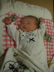 葵(あおい)・気持ちよさそうだ…。(娘の名前の「名付け」の過程を振り返るシリーズです。以前のepisodeを、遡る時は、カテゴリよりご覧ください。)★「葵(あおい)」に決定!★episode1でも、述べましたように、2004年7月31日に生まれた、二人目の赤ちゃんの名前、決定しました。生まれて1週間、「名無し」の赤ちゃんでしたが、親からも、早く名前付けないと、呼んであげられないよ、と言われていましたし、市役所への届けの期限も1週間を切っていましたので、決めました。と、いうか、前々から2,3に候補は絞られていて、妻は、娘が生まれたときから、その名前で呼んでいたようなので、ほぼ決まっていた、といってもいいのですが。名前は、「葵(あおい)」としました。前回にも書いたことですが、「名前」というのは、どういう経緯で、どういった理由で名づけられていくのか、その経緯をみていくと、おもしろいだろうな、と思います。そしてもうひとつ、これも書いたことですが、「名前」というのは、本来初めから、というか生まれる前から、決まっていることではないのか、という思いが、自分の中であります。そんなことは妄想だと思われるかもしれませんし、親が考えて名づけているじゃないか、とも思われるでしょうが…。赤ちゃんが、自分自身の名前を決めて生まれてくるのか、天が決めて生まれてくるのか、それは分かりませんが、親が親の考えで決めた、と思っていても、それさえも「必然」という流れの中に、組み込まれているのではないか、と思ったりします。せっかくなので、忘れないうちに、今回の名づけの過程を、思い出せる範囲で、少しずつ、これから何回かに分けて、書いてみようと思います。★生まれた日の日記より★以下、7月31日の夜、当時ヤプログの日記に書いた日記を、加筆訂正して再現してみます。生まれた「葵(あおい)」は、体重が約3800gでした。かなり大きい方でしょう。予定日通りきっちり生まれてきました。私に似ず、「几帳面」なところもあるのでしょうか。それならば、よかったと思います。(^^;昨日から実家に帰っていた妻は、昨日の夜、正確にいうと、日付が変わった今日の深夜2時ごろ、破水したため、妻の父親に病院に送ってもらったそうです。そして4時頃だったか、病院にいる妻本人から、電話がありました。もちろん私は、寝ていました。まだ陣痛はないから、しばらくは生まれないと思うということでした。まだ大丈夫と、少し横になって数時間寝てしまいました。そして再び起きて、私は、気にはなりつつも会社に行きました。そうしたところ、8時半ころ、妻から電話がありました。何だろう?と思い、聞いてみると、意外に冷静な声で、「もう生まれたから。」と、連絡がありました。あれからそんなにたってなかったので、まさか、生まれた電話だとはおもわずに、「え?もう生まれたの?」と、びっくりしてしまいました。1人目の娘、透萌(ともえ)のときは、早朝でしたが、出産現場に立ち会うことができました。これは本当に感動しました。今回は立ち会うことはできなかったものの、夜に仕事の合間を縫って、見にいきました。一目見た感想は、「あ、ちいさい!」でした。それは、まあ今日生まれたばかりだから、当たり前といえば当たり前なのですが…(^^;同時に、矛盾しますが、これだけ大きな子が、お腹に入ってたことを思うと、よく入ってたなあと、不思議な感覚にもなりました。今日は、眠っていることが多かったのですが、時折目を開いてボーっと周囲を見渡したりしたり、手をぷるぷると動かしたり、顔を赤くしてくしゃくしゃにして「うー」と泣いたり、いろいろな表情を見せてくれました。赤ちゃんて、見ているだけで飽きないものです。「不思議なもの」がここにいる、というなんとも奇妙な感覚です。女性は自分で産んだ、という実感があるから、自分の分身のように感じることがあるのかもしれませんが、男の場合は、自分の子、と言われても、極端に言えば、「ポン」と出された感があって、「え?これが自分の子なの?」という感じも、正直あります。まあとにかく、赤ちゃん、ここまで来てくれて、本当にありがとう。これからもよろしくお願いします。人気blogランキング登録しました。おもしろいと思ったら、クリックしていただけるとうれしいです。今回の順位は? ▼透萌(ともえ)と葵(あおい)