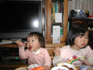実家で、食事した時の光景。2歳の葵は、ハンバーグにくらいついています。どう見られているかなんて気にすることなく、とにかくくらいついています。色気も何もありません…って、色気なんていう年頃ではないですが…。