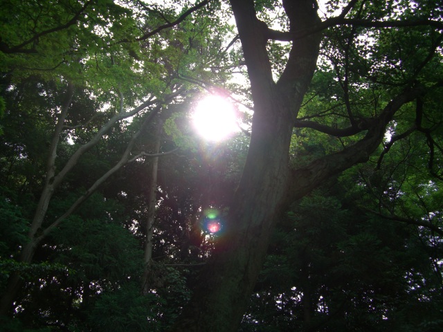今日、2回目の日記です~写真でサクサクッといきましょう~♪すぐ裏の神社の鳥居。日曜日の朝は、お参りをかねて、娘ふたりと神社へ行くことが多いです。神社の境内ですこしたたずんで、太陽が出てたら写真をとって、そして、近くの公園まで行って、という感じ。このゆったりした時間が、けっこう自分にとってはリフレッシュの時間でもあり、娘との大切な時間でもあり、自然と触れる時間でもあり、気に入っています。木々の下で…。