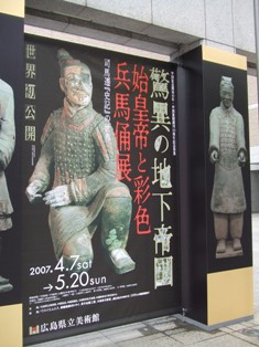 広島県立美術館で「始皇帝と彩色兵馬俑展」をやっている。 始皇帝陵の彩色の残った兵馬俑がひとつ展示されていた。 最近は読んでないけど、宮城谷昌光や塚本青史の古代中国の小説は面白い。 秦の始皇帝が初めて中国を統一したんだから、それまでの春秋戦国時代までは まさに群雄割拠で、国も英傑もたくさんでてくる。 中国の故事成語のもとになった戦いや英傑のエピソードもたくさんあって 面白いけど、いかんせん記憶力がないというか頭の中の整理整頓ができないというか この故事がいつの時代で、誰と誰が同時代の英傑で、どの国とどの国が敵対していて この二国は同盟を結んでいたなど、こんがらがってわからなくなる。 読んだことを、全部覚えていたらどんなにいいだろうと思うけど。 読んだ推理小説の筋や犯人さえほとんど忘れているような男にはそれも無理というものですが。