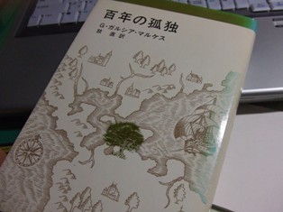 今日のこと。 よく行く古本屋さん、いつものように棚をなめるように見て回る。 僕は世間と流行がほぼずれているので、古本しかない作家は多い。 最近チェックするのは、ロス・マクドナルドとパトリシア・ハイスミスと G・ガルシア=マルケスなどの絶版本たち。 いつもはあまりチェックしない一冊100円のコーナーを見ると、 ガルシア=マルケスの「百年の孤独」が目に留まる。 おそらく日本で初めて出版された「百年の孤独」だ。ちょっとhappyな気分。