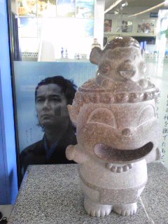 佐世保駅の「貧乏神が去るの像」の後ろに福山雅治さんのポスターがありました。