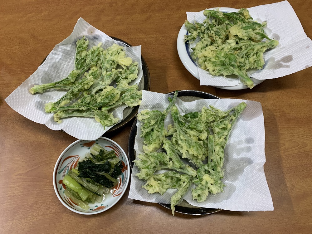 庭で勝手に成長しているタラの芽もそろそろ終わりカミさんを拝み倒し、大量の天婦羅を作ってもらったこれに野沢温泉で買った本場物の野沢菜漬け松本や長野で買った土産物とはまるで別物 ぼくが子供の頃の味おかずはこれだけ なんだか幸せになる春の贈り物