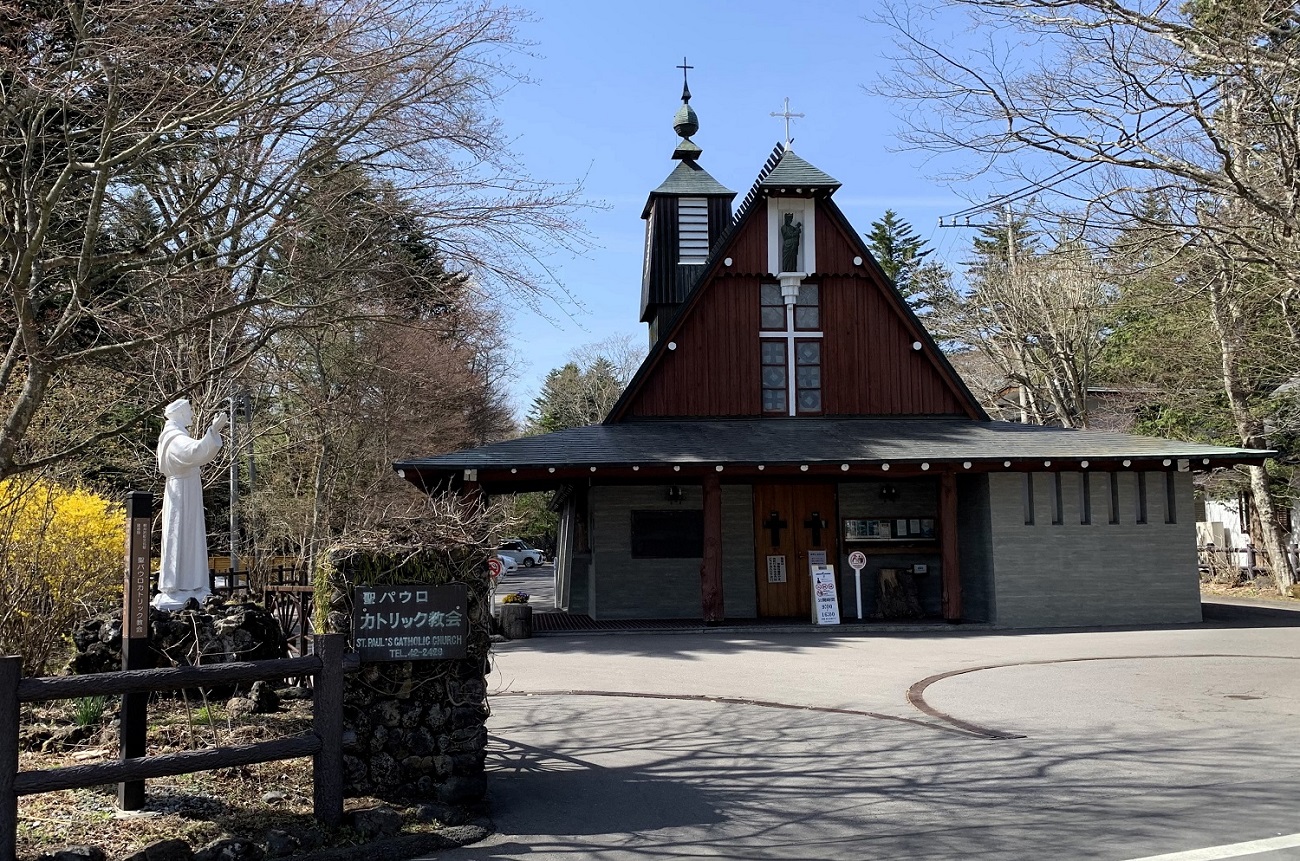 この教会なら50年近く前から知っている。旧軽銀座通りから一本北にある道で、どんなに旧軽銀座が人でごった返していても、林間の静かな佇まいを保っており、キリスト教徒ではないが祈りを捧げてきた。