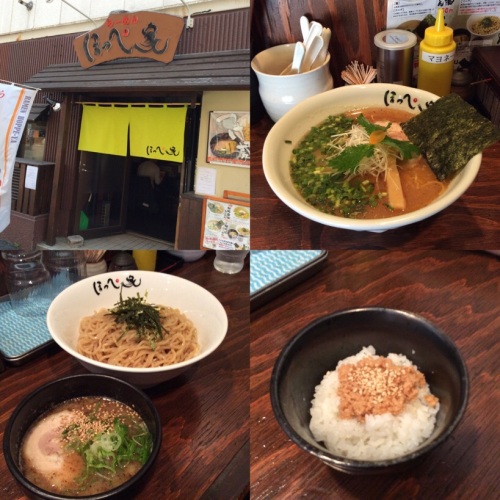 札幌市東区役所の裏にあるラーメン屋「ほっぺ屋」テスト前で練習が休みの次男は「つけ麺」と「鶏そぼろ飯・サービス品」私は、和風醤油ラーメン…これが、見た目は全然違うのに、旭川蜂屋に似ていて美味しかった。^_^