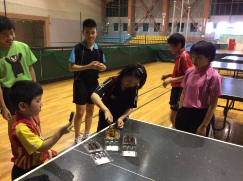 今日の午前中は小学生はプレハブ、中学生は学校での練習でした。午後からは合流しますが、中学でアクシデントが発生したようです。憲コーチのラケットが、割れてしまったそうです。ペン表、裏面なし…まさに和式ペンです。仕方がないので、午後からは、シェークハンドか中ペンで頑張ってもらいましょう。さあ、頑張りましょう。