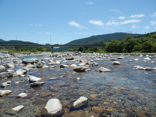 先週、久しぶりの平日休み。 どこへ行こうか考えて、暑いから山方面へ行こうということに。 途中の道の駅から、川へ降りてみました。 川には鮎釣りの方がいっぱいいました。 川の中に足を入れてみました。 冷たくて気持ちよかった~。 その後、目指したのは付知峡 お昼に着いたから、そこでお蕎麦を食べました。 流しそうめんを食べている団体さんもいました。 流しそうめん、美味しそうでした。 ご飯を食べた後は、滝を見に マイナスイオンに包まれて、とっても気持ちよかった~。 でも、たくさん歩いたから 疲れた~。 こんな釣り橋も渡りました。 久しぶりの平日おでかけ。 やっぱり平日は空いてて、良かったです。 もっと、平日に休みが取れるといいのにな~。