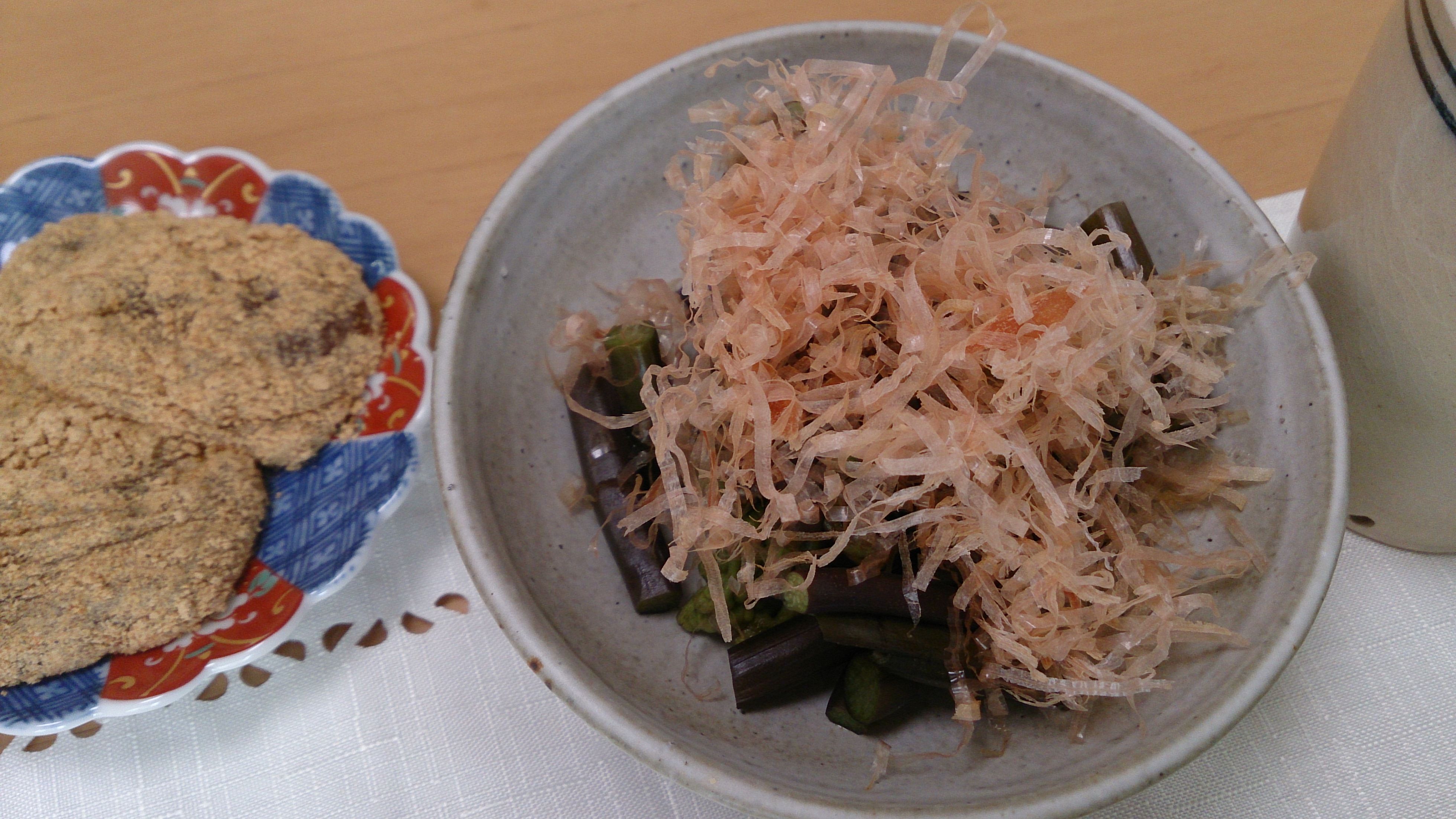 わらびのお浸し。前日にあく抜きをしておいてくれました。