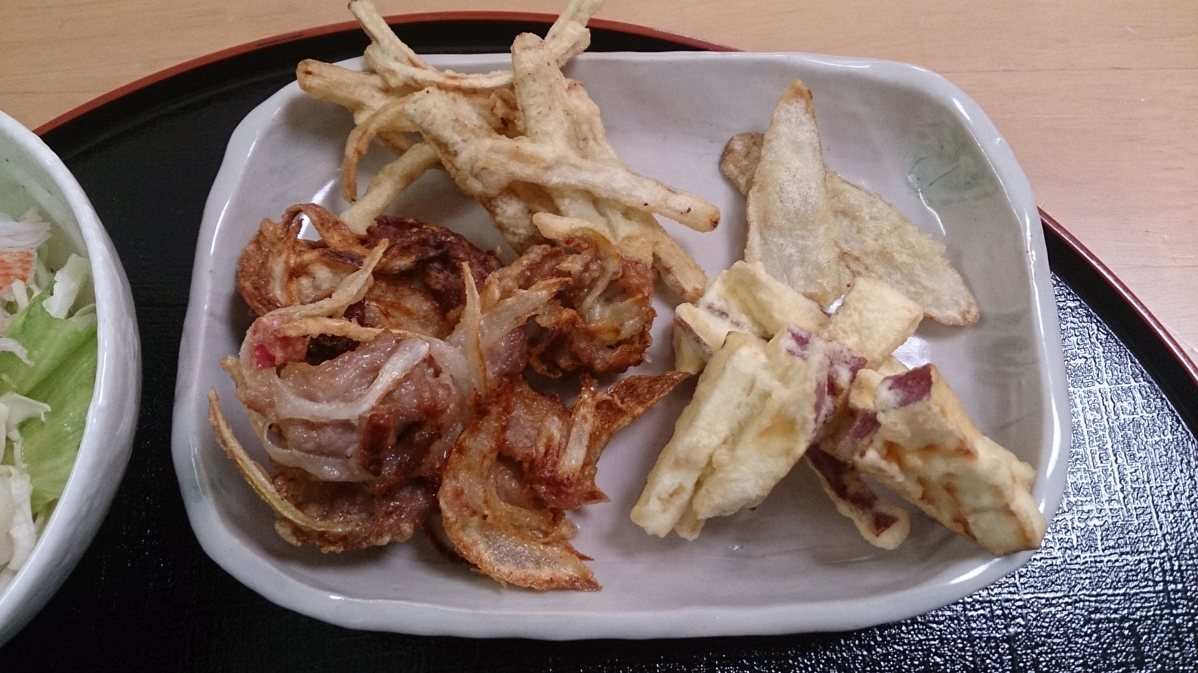 豚肉の天ぷら、紅ショウガが効いててとっても美味しい