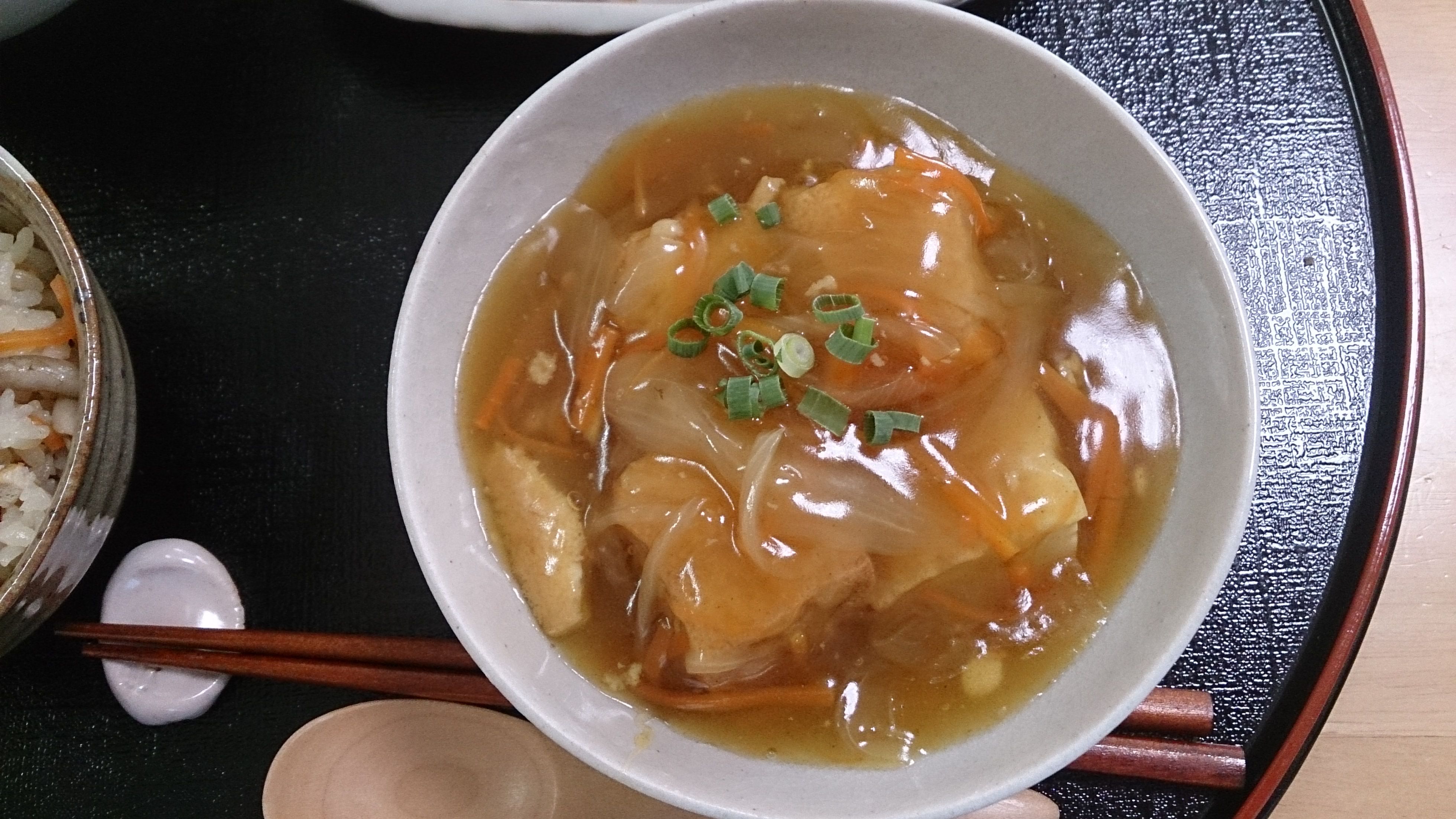 厚揚げの野菜あんかけ マンゴープリン で~す。