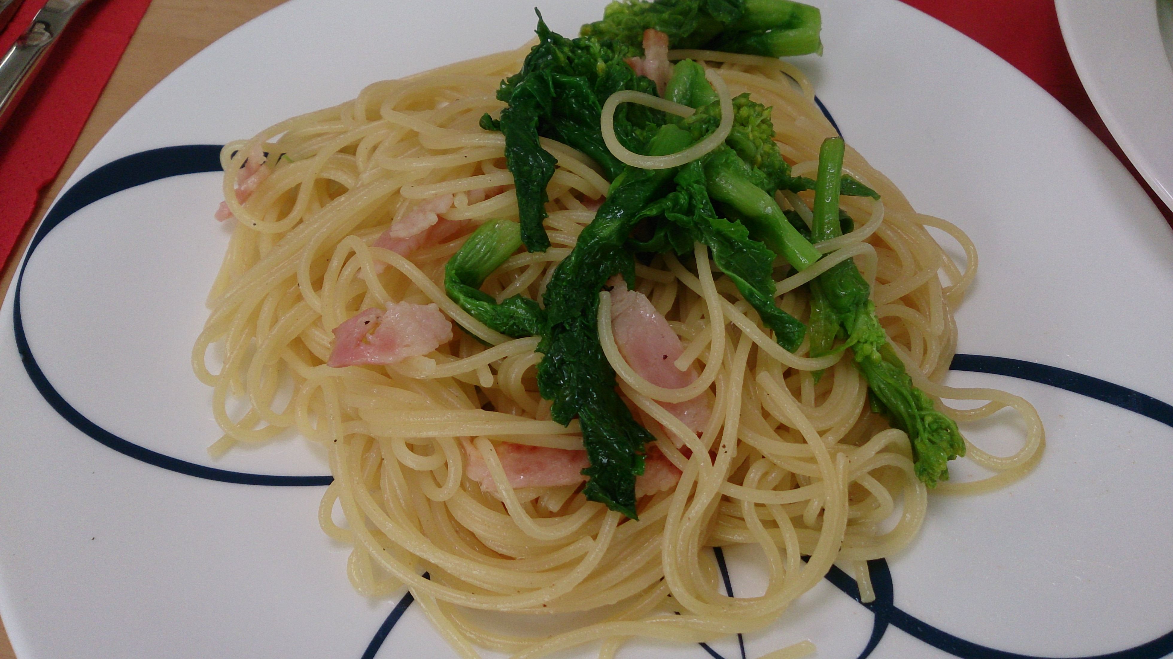 菜の花とベーコンだけのシンプルなパスタだけど、とっても美味しい。