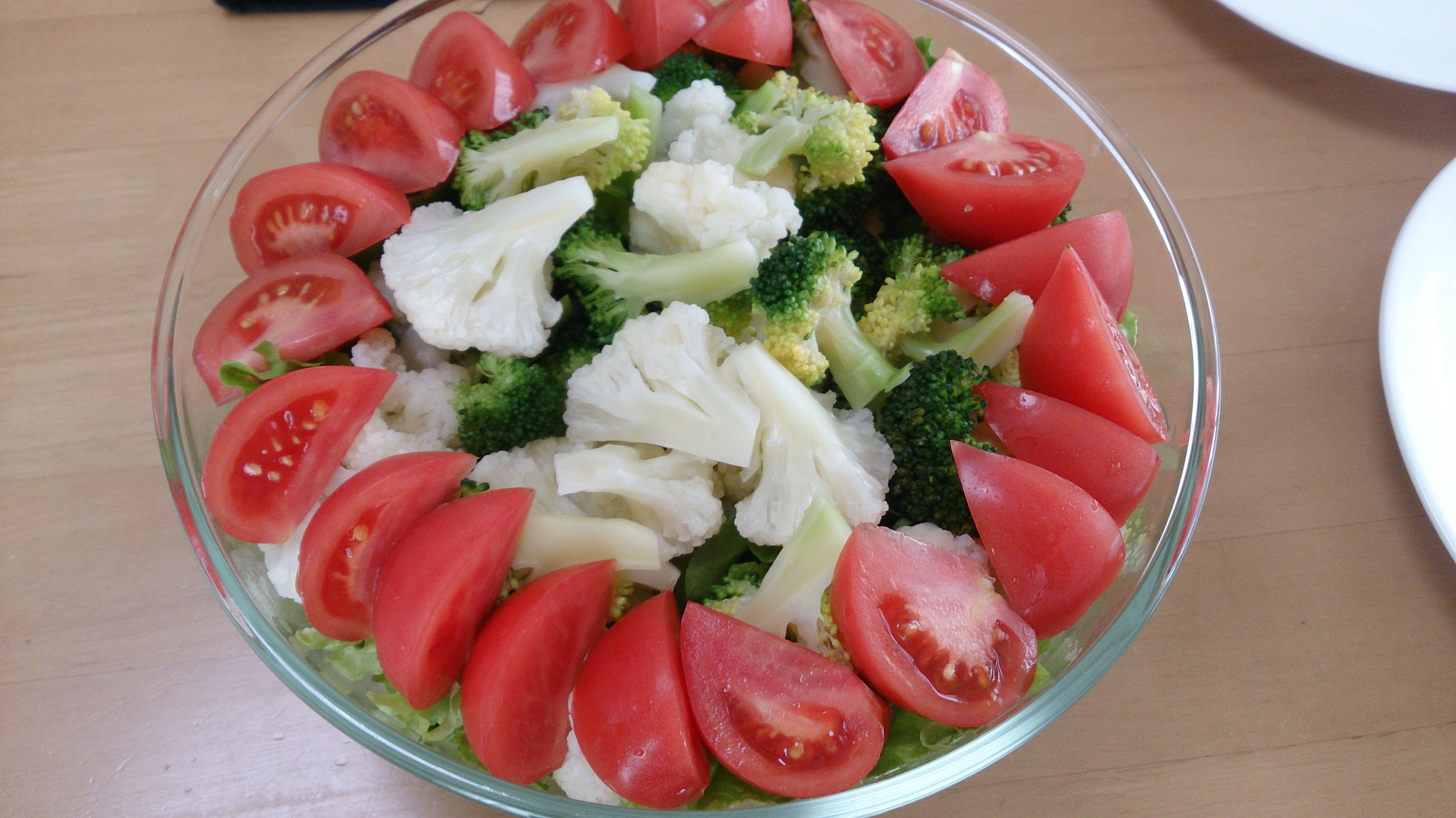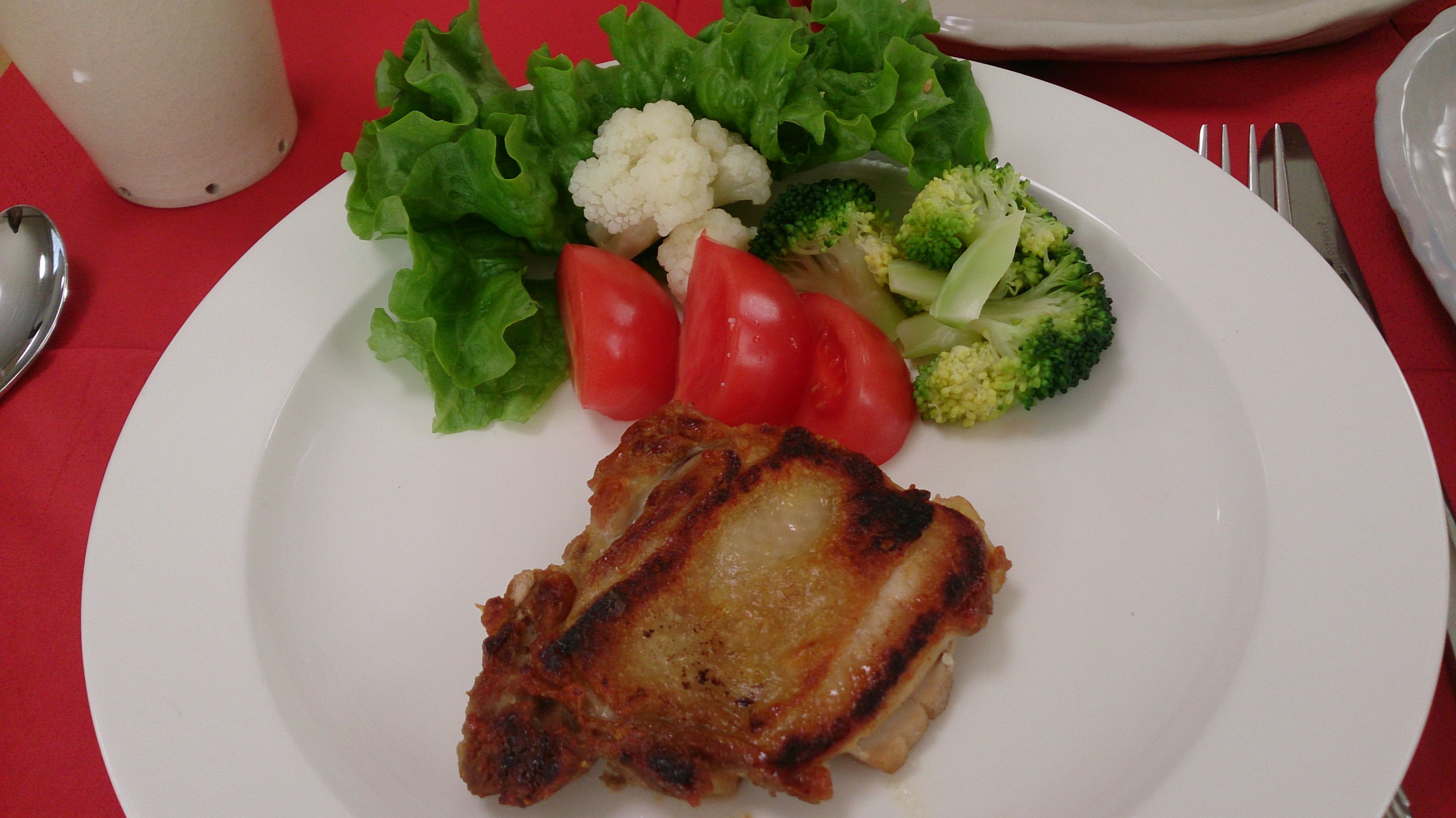 菜の花パスタ チキンソテー グリーンサラダ ツナドレッシング