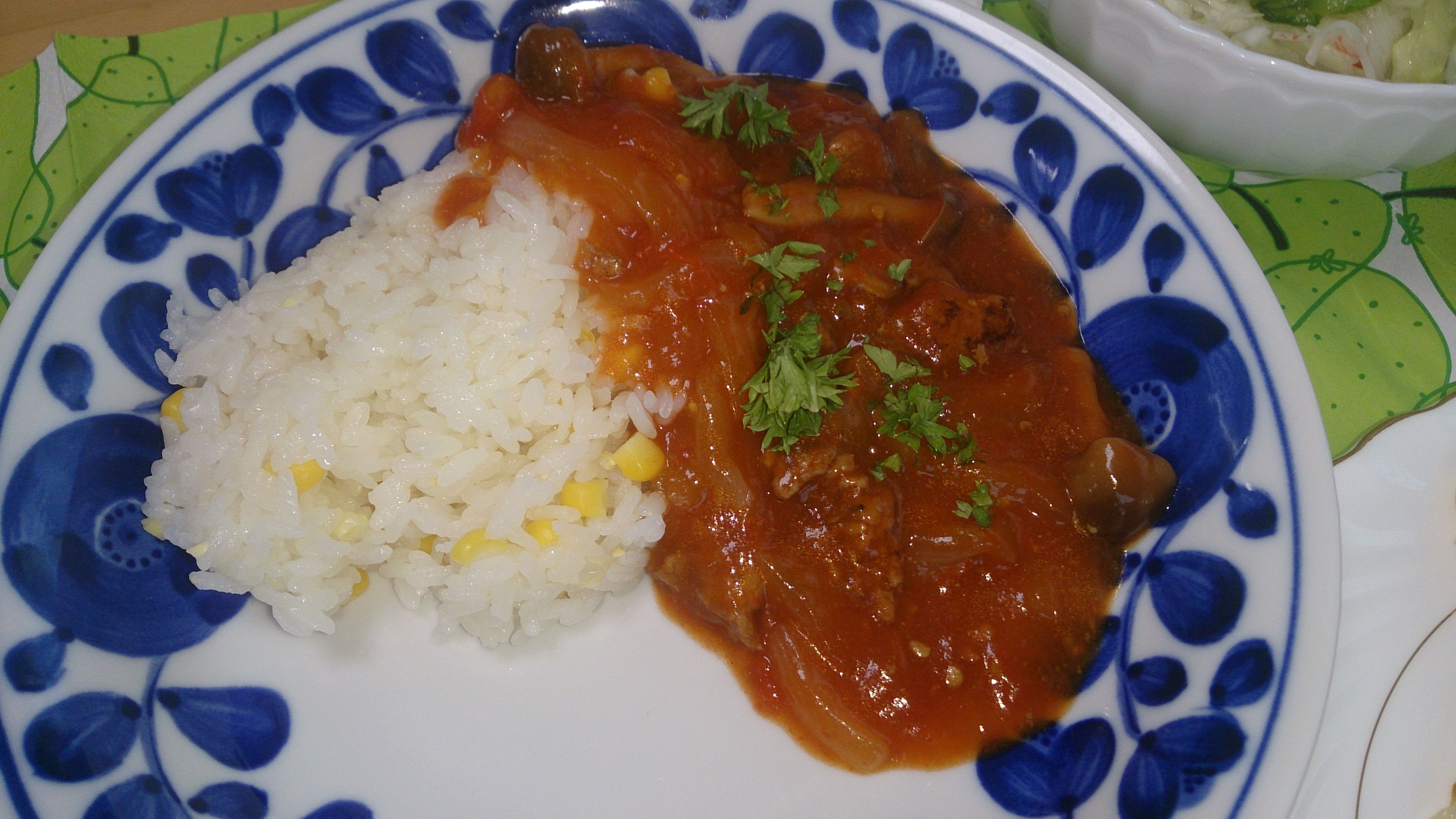 とうもろこしご飯が甘くて、ハヤシに合う~スマイル