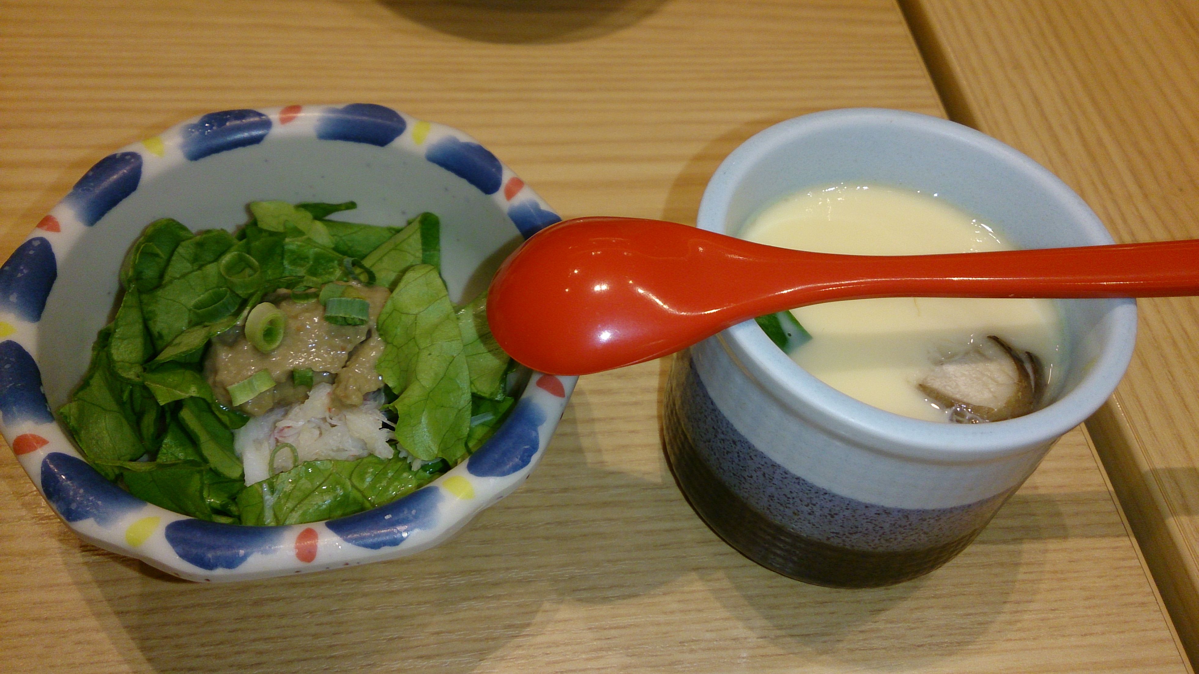 カニ味噌のサラダと茶碗蒸し