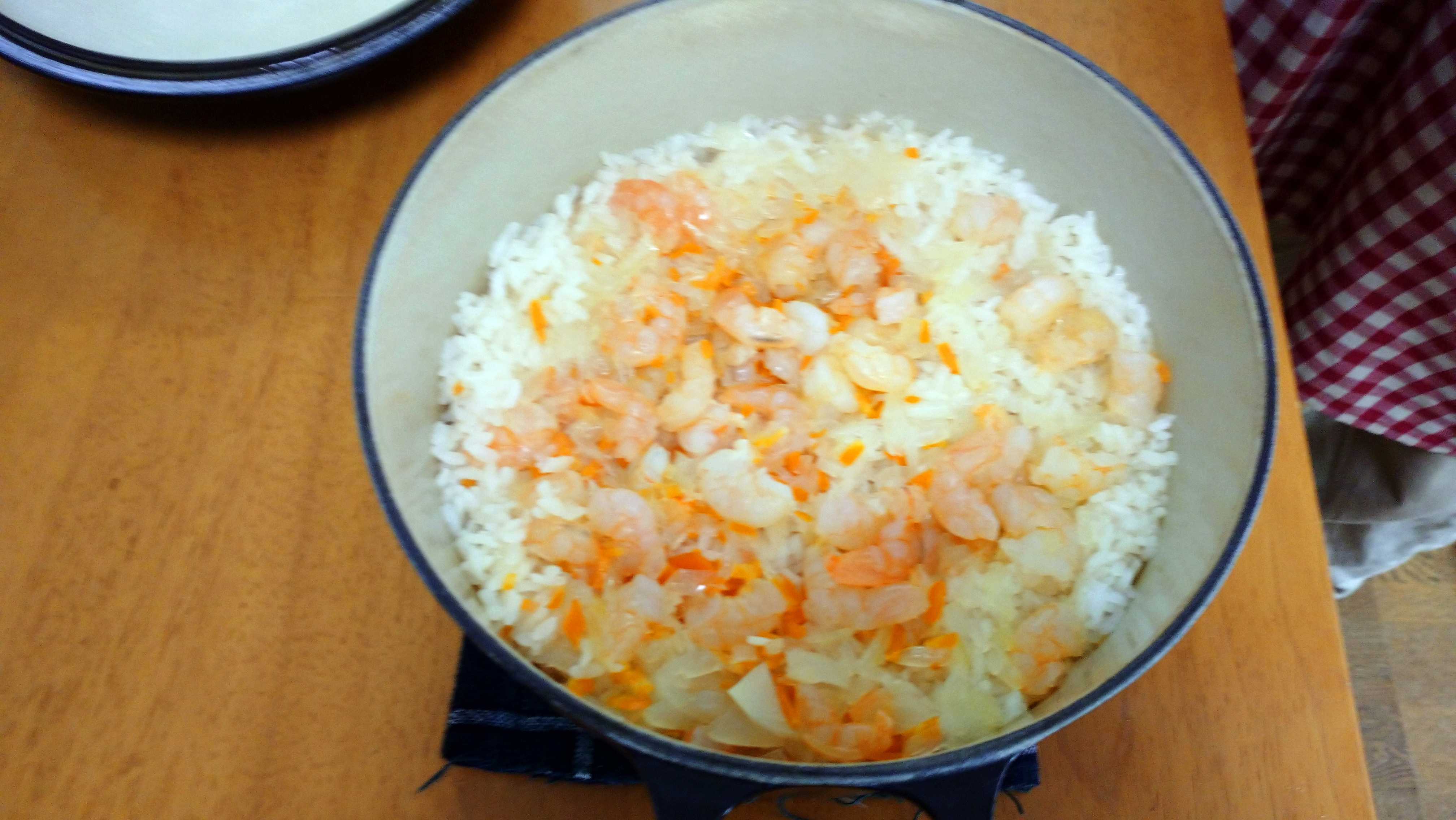 ブイヨンで炊き込んで、炊き上がったらバターを入れて混ぜました。