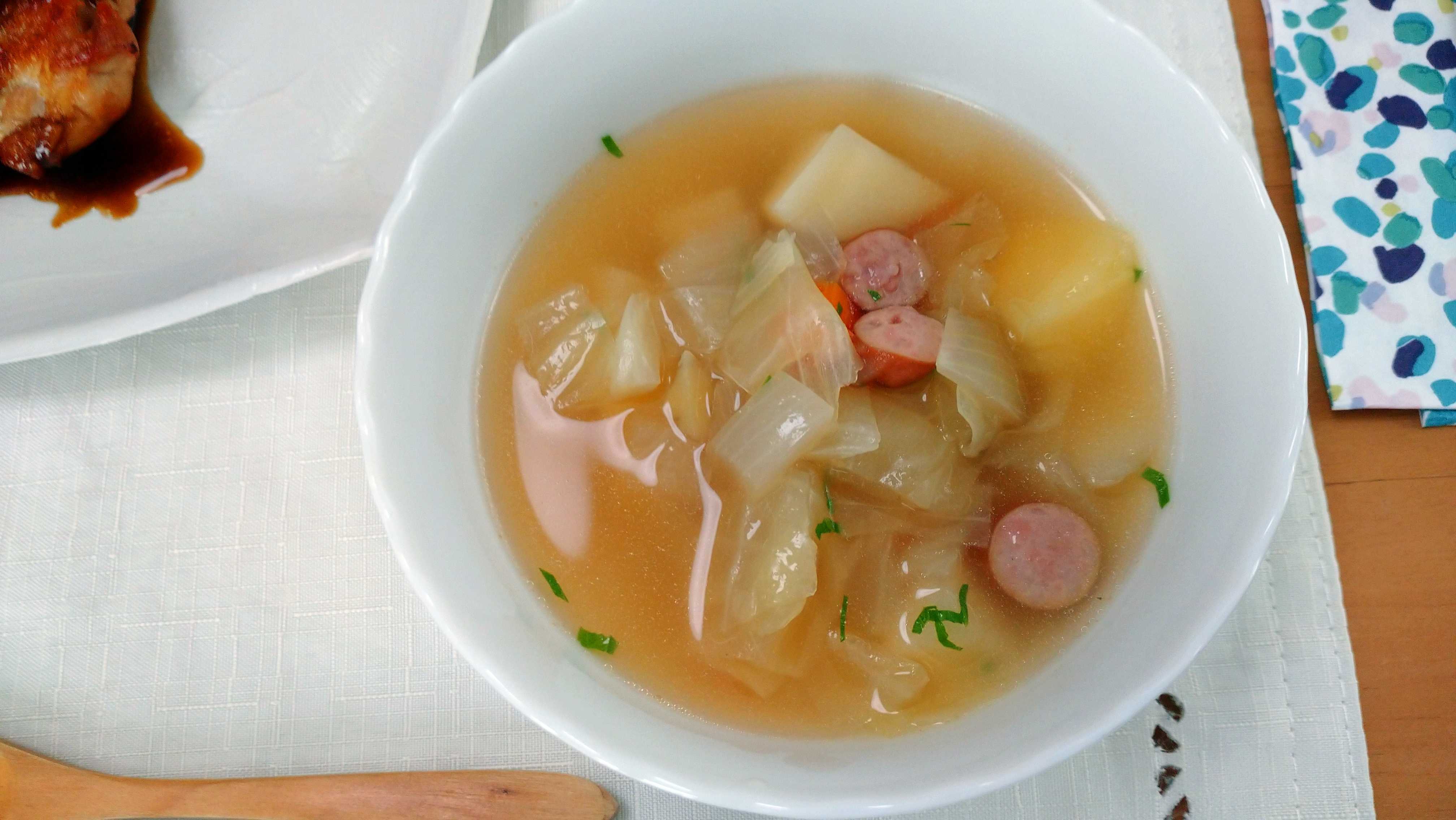 サイコロ野菜のスープ かぼちゃのグラタン  です。