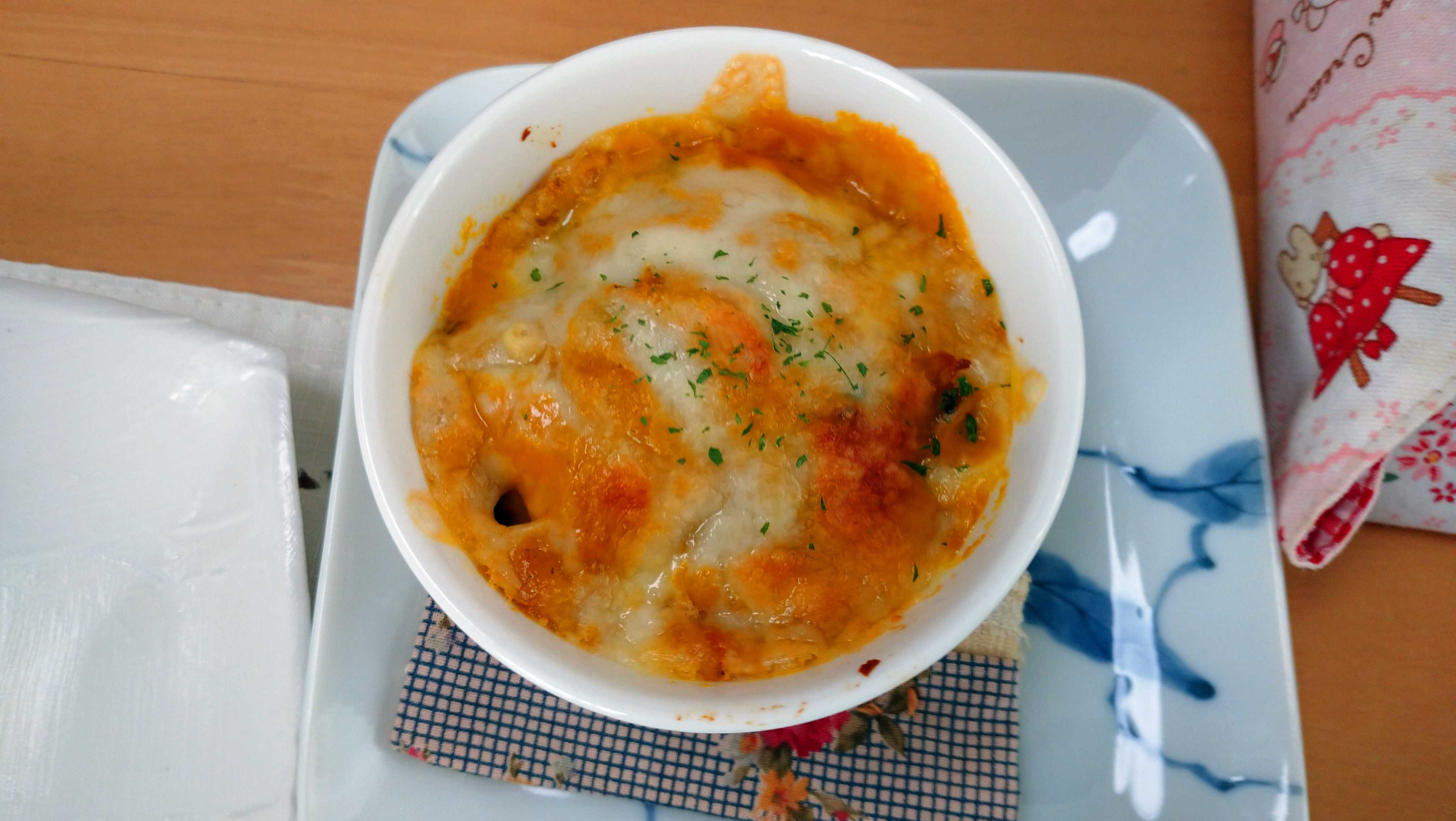 かぼちゃの煮物とクリームチーズを使って、簡単に出来ちゃったグラタン。