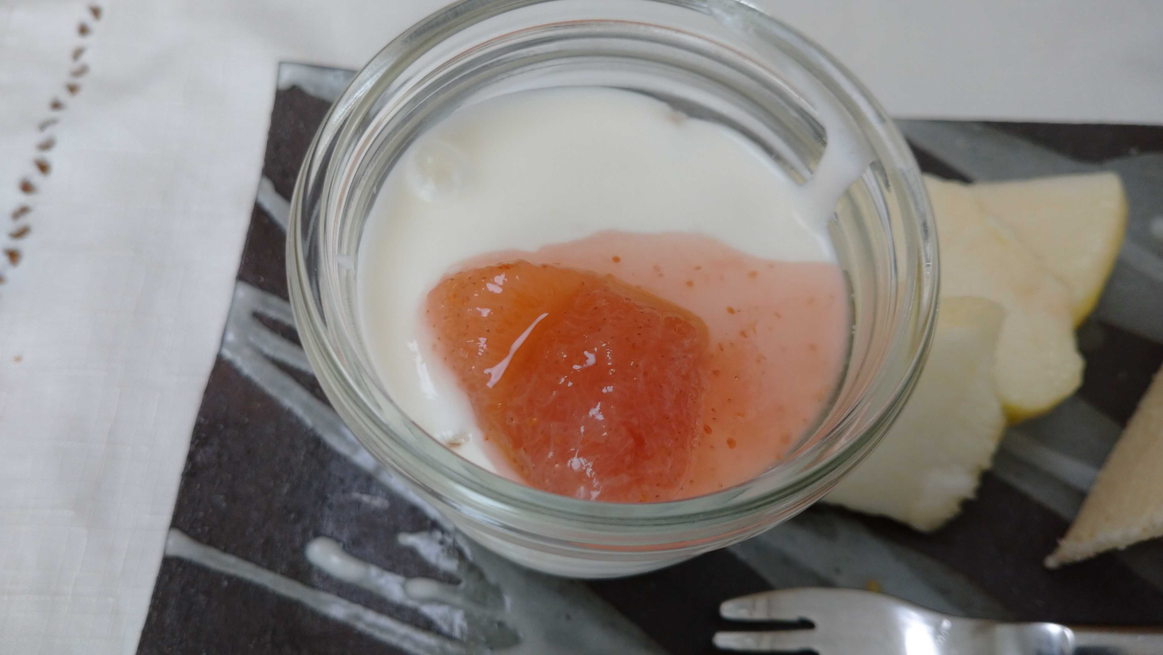 グラノーラを入れたグラスに流し込み、冷蔵庫で冷やしました。