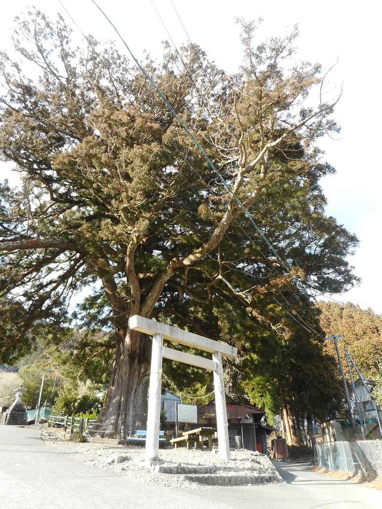 コロナで他県へは行けず、里山が続きます 2月14日 日曜日藤枝市・高根山から芋穴所のマルカシを見ながら、林道へ下ります 落石の多い林道を歩いて、高根白山神社の方向へ進み最初に登って来た林道へ出るので、登山口・鼻崎の大杉へ下ります 登山口で迎える鼻崎の大杉 ↓県指定 天然記念物鼻崎の大杉 ↓林道(車道)を登ります見晴らしのいい場所へ出ました ↓中央の▲山は、丸子富士かな? ↓高根白山神社 ↓そこから登山道を登り・・・山頂下に標識 高根白山神社奥院へ行ってみます ↓跡地でした ↓その隣には無線中継所? ↓高根山▲871M ↓ ここでランチを済ませ、マルカシへ行きますマルカシ方面の分岐へ出ました ↓芋穴所のマルカシ ↓ 県指定天然記念物 大きな木がよく分かりますマルカシを下り、林道へ出ます落石の多い林道を高根白山神社方面へ進み、登って来た林道(車道)へ出るので鼻崎の大杉のある駐車場へもどりました今日も訪問ありがとう~また来てねバイバイでチュ