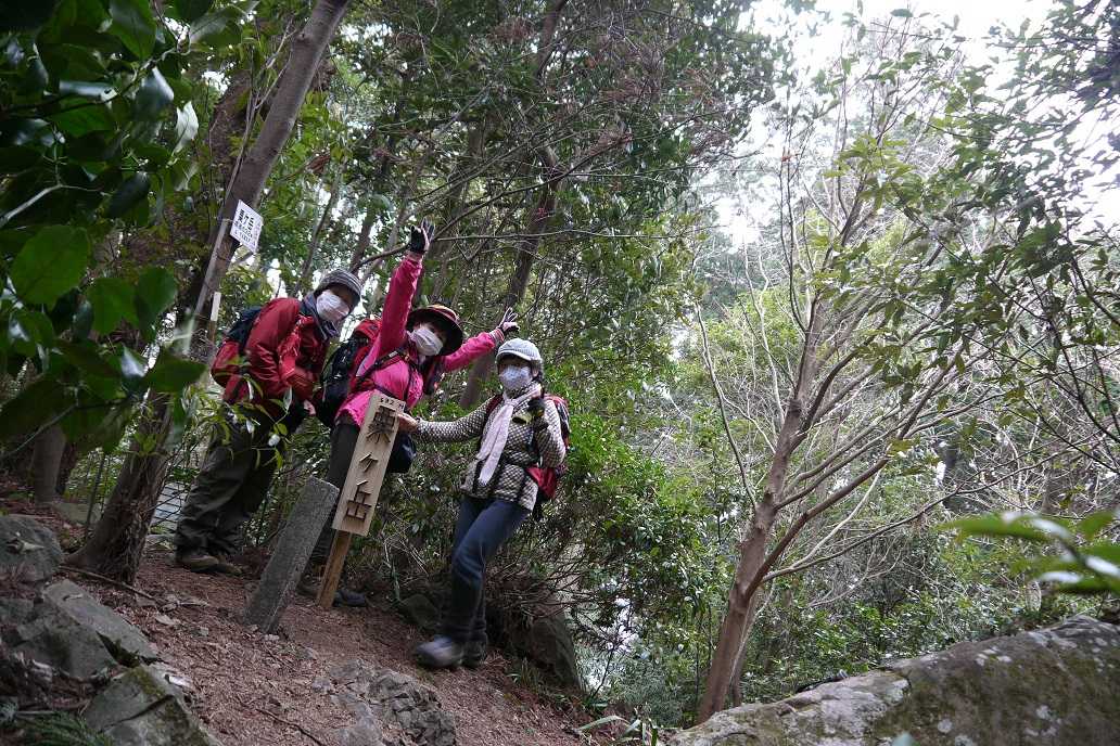 登山ルートは、お茶畑の中を登り登山ルートである古株の下に毎回小枝の日付を見ながら