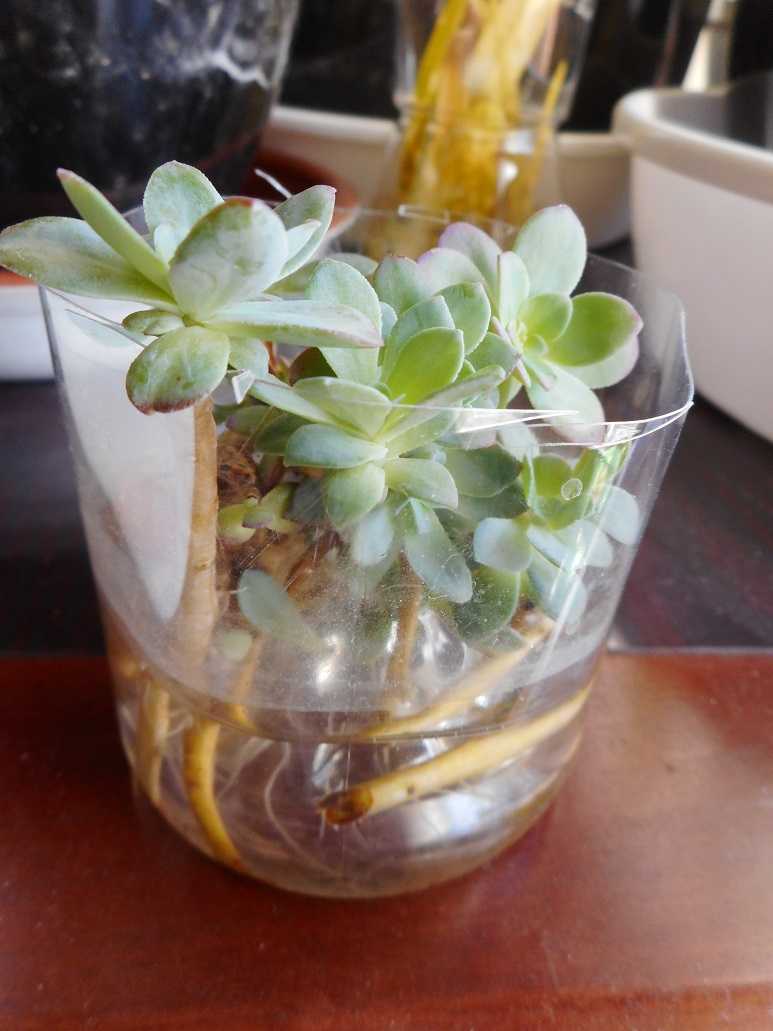 挿し穂した同じ多肉を水栽培 ↓ 2週間位たったかしら?