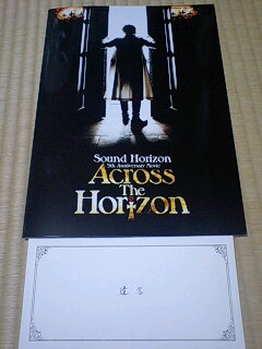 久しぶりのブログ更新ですが、ネタはやっぱりサンホラ。最近、またサンホラ熱浮上中です。やっぱり好きだなぁと思いながら聞いています。ということで、今日は学校へ行く前に、梅田に出て、21日から公開されたサンホラの5周年映画のパンフレットを買いに行ってきました☆うふふwブルク7って、なぜか私はスカイビルとのところにある映画館だと思い込んでいて、何も考えずにスカイビルに行ったら、違っていて…。非常に残念でしたOrzスカイビルはクリスマス屋台とか、ツリーとか出ていて楽しげだったけど、あとの予定が詰まっていたので、一切見ずに引き返しました><。Sound Horizon→マニアック→マニアックなものの映画→単館公演の映画→単館公演をいっぱいしてそうな映画館→スカイビルの映画館?という変な図式が出ていました。。で。あらためて、携帯で調べて行ってみると、駅から近かった。。。スカイビル微妙に遠いんだもん。。イーマビルの中の映画館でしたwそして、無事ゲット☆体力がないー、とか、明日発表の資料どころか本すら読んでないー、とか、色々と弊害はあったのですが、全部無視して買いましたとも。とりあえず、衝撃だったのは・・・セットリストのページに挟まっていた、「遺言」。電車の中で見ていて、泣くかと思ったじゃないですか!まさかここでくると思っていなかったので。。遺言。初めて聞いたときは、なんで急に言いだしたかわかんなかったけど、Revoさんが言いたいことがつまった歌詞だなぁと思って、少し暖かい気持ちになりました。いい曲です。遺言。映画、楽しみだなぁ。私が、行くのは12月に入ってから。あと一週間近くあるけど、楽しみに頑張ろうー◎・・・明日、1時間発表あって、その資料出来てないんだけど、大丈夫かしら。。