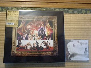 12月9日発売のSound Horizon「第三次領土拡大遠征凱旋記念『国王生誕祭』」フライングゲットしましたー☆うふふ。とりあえず、写真はそれです。となりのCDは霜月はるかとRevoさんの「霧の向こうに繋がる世界」のCDですw大きさ比較のために置いてみたw大きくない!?TSUTAYAで予約していたので、21時半すぎに実習が終わったその足でTSUTAYAに行って、ゲットしたんだけど、でっかっ!!と思ったw本当は、明日の学校前にとりに行こうと思っていたんだけど、今日取りにいってよかった!こんな大きいもの持って学校にいけないwでも、ボックスの感じはステキ。ついでに店舗限定のDVDケース↓DVDケースがいる意味がわかりました。こんな大きなもの、持ってあるけないもんwもし、誰かに貸す、ということがある場合、渡しにくいのできっとこのDVDケースにいれて渡せということなんだということがわかったwで。内容は、1日目のみ全部見終えたのですが、やっぱり泣いちゃいます。ネタバレはあんまりしないようにしますwとにかく、技術力がなんて高い集団なんだろうって本当に思いました。歌も、音楽も、演出も、演奏も。1日目は私も会場で観ていたんだけど、改めて見るとすごいな、と。特に、Moiraからの新規メンバーのMIKIとえんちゃんはスゴイ。MIKIさんとえんちゃんの「エルの天秤」は鳥肌。MIKIのオクターブ下で歌う伯爵部分は会場でもすごいなぁと思ったんだけど、コーラスのえんちゃんも、1オクターブ上だったり下だったりを繰り返していて。超カッコイイ。あと、アレンジが変わっていてバックの演奏が超カッコ良かったりして、ステキでした。Revoさんの言葉は会場で聞いたときも泣いちゃったけど、やっぱり泣いちゃいます。あ、あと、じまんぐのシャツがおかしくて、すごい気になっていたんだけど、最後の場面で、ちゃんとなっていたので、間違えて着てたんだなぁと確認wRevoさんの爪の色も気になった。似非のときと爪の色変わっているし、Revoさんの黒のマニュキュア、右手の人差指だけぬられていなかったのはなぜ…。と。あんまり内容に関係のないネタバレをしてみましたw2日目は明日見ようと思いますwしばらく、幸せな気分で生きていけそうw