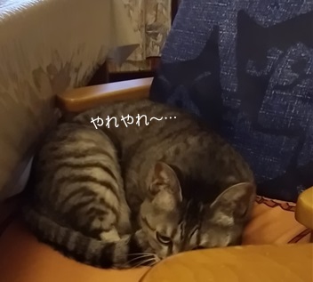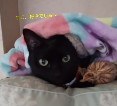 今朝は、雨模様の埼玉県kumaru04地方です。そのため、朝のルーチン・バードウォッチングはお休みのようでお父さんベッドで寛ぐトラちゃんです。いつもきちんとウォッチしてるんですから、たまにはゆっくりしたら(^^?子どもたちもそれぞれ別室にいるし、のんびりできるでしょ。あ~そういえば…トラちゃんの後方に、まるでラクダのごとくの盛り上がりが(^^:;では決まりですので、めくってみましょ~( ̄∀ ̄*)ぷっ(*≧ω≦)とらぞーきゅんとミツコのチビッココンビが寝んねしてました。しかも、換気用か?少~し間を空けているので、外側からは、ふたこぶラクダのように見えたのでした(・´艸`・) ☆ご訪問ありがとうございます☆ ☆お手数ですがポチッとお願いいたします☆にほんブログ村