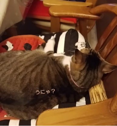 リビングのテーブルで、ちんまり佇むとらぞーきゅんです。視線の方は椅子に陣取る誰かに注がれているのですが、その可愛いお口から発する(今日も元気に親ばか炸裂中~ヽ(∀≦*)コメントは何やら妙な具合ですね。さて、誰を差してかというと…チャコでした(^^)何やら、ばつがワルくて隠れているかのよう。それはこのような理由です。久々に、自分のしっぽを追いかけて遊んでいたんですね~チャコは仔猫の頃から、3姉妹で一番、自分のしっぽで遊んでいました。にしても、人間年齢アラフィフの8歳を過ぎても披露するとは♪それがたまたま、とらぞーきゅんの目に入った、という事です。確かにとらぞーきゅんの言う通り、頼れるおっとりキャラの長女チャコとはキャラが違うかもですが、すっごく可愛かったんだと思うわよ(^^)そうですとも♪というわけで、リビングテーブル・TV側の半分はすっかりにゃんず用になってしまった、というお話(^^:; ☆ご訪問ありがとうございます☆ ☆お手数ですがポチッとお願いいたします☆にほんブログ村