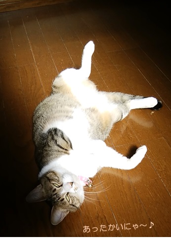 昨日の昼間、割と強めの日差しが降り注いだ2Fで、無防備過ぎる、へそ天を披露しているチャコです。チャコさん、背中まで気持良さそうですけど、ちょっと怖いので、白目を剥くのはやめていただきたいですが…ま、伸び伸びしているのにいちゃもんつけてもね~ごゆっくりお寛ぎあそばせ♪お父さんベッドの上では、トラトラ&ミツコのトリオが飽きもせずひっついていますが、今日は役割が違うようです。昨日、一昨日とペロペロしてもらっていたミツコが、トラちゃんにお返しをしています(^^)しばらくすると、とらぞーきゅんが目をさまし~ミツコにリクエストをしていました。この後ミツコは、点数を稼ごうとしているのか、よいお返事でサービスを開始していました(・´艸`・)ん~しかし、3にゃんで乗っているお布団は、天日干ししたばかりで、ほわっほわ…う、羨ましい(^^:;猫が5にゃんもいるのですから、1番乗りはお猫様、ですけどね~あ、そういえば。もうひとり、ミランの姿が見えません?あちこち探して見つけたのは、私のですがやはりお布団でした。干したてのお布団が好きなのはみんにゃ同じですが、ミランだけは、中に潜っていたので…上に乗るより遠慮しているのでしょうか(≧m≦) ☆ご訪問ありがとうございます☆ ☆お手数ですがポチッとお願いいたします☆にほんブログ村