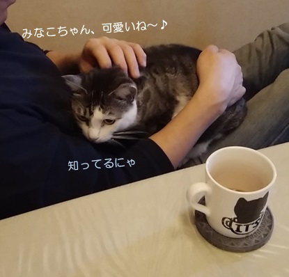先日、久しぶりにミランが、お父さんに抱っこされていました(^^)※注 お父さんはミランをみなこちゃん、と呼びます久しぶりというのは…抱っこOKとNGに対する、ミランの独自基準があるらしく、それがまた結構厳しいんですよね~(^^:;そのくせブラッシングは「いつでもokにゃ~」というワガママ娘いつもそんなに甘やかしてくれているお父さんに、もう少しサービスしてあげればいいのに。え?あぁ、これのことですか?ほほほ。人間ドックで問題ないと太鼓判をいただきましたので、お父さんも安心して買ってきてくれるわけです、私の分だけ( ̄m ̄〃)ところで今朝もお父さんは、ミツコがヘビロテしているパソコン脇の棚上。ここのクッションで寝んねしていた、ミランを見つけ、ま~撫でる、撫でる、ほんっとに甘やかしてます~あ、これ実はその前に私が撫でていた時のショットです、が?なんの謎かけかな~と思っていると…あぁ~私の時はそのままですが、お父さんは撫でた後、ちゃ~んと、フリースをかけてくれたと、こう言いたいのかしら?はいはい、仰せの通り~(-∀-`; ) ☆ご訪問ありがとうございます☆ ☆お手数ですがポチッとお願いいたします☆にほんブログ村